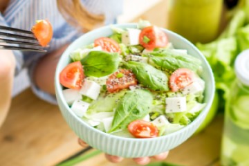 Kolacja: Sałatka z serem Feta i paprykami [1 porcja] – 1-2 garści mieszanki sałat, ½ średniej papryki czerwonej, ½ średniej papryki zielonej, ½ średniej papryki żółtej, ¼ czerwonej cebuli, 5-6 oliwek, 1 plaster sera Feta, 1 łyżka oliwy z oliwek, pieprz, zioła prowansalskie, bazylia, oregano. Papryki pokroić na mniejsze kawałki. Ser pokroić w kostkę. Sałatę połączyć z warzywami i serem. Wymieszać. Doprawić do smaku pieprzem, ziołami prowansalskimi, oregano i bazylią. Polać oliwą. Całość jeszcze raz wymieszać.